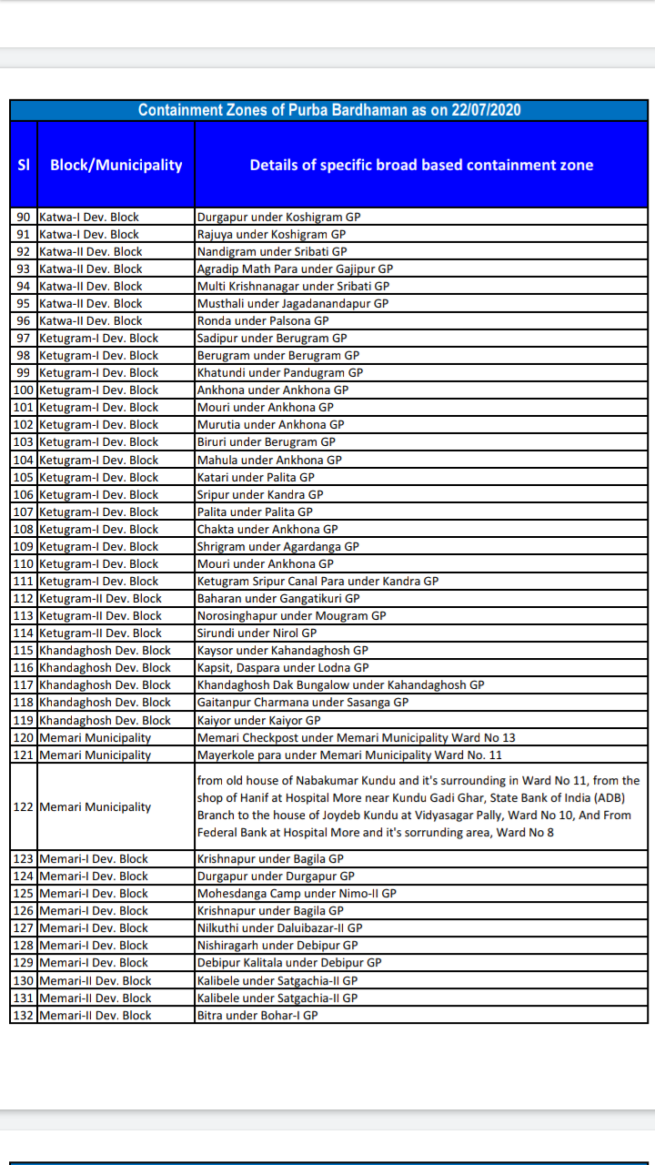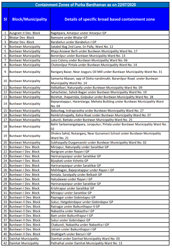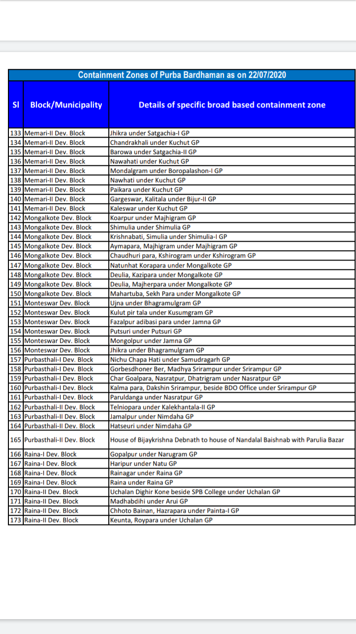 পূর্ব বর্ধমান জেলায় বাড়লো কনটেন্টমেন্ট জোন : বেড়ে দাঁড়ালো ১৭৩ !