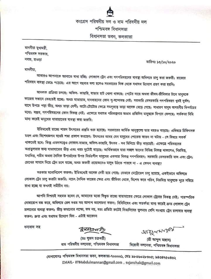 যেভাবে মেট্রোরেল চালু হয়েছে সেভাবেই লোকাল ট্রেন চালু হোক সংখ্যা বাড়িয়ে সে কথাও জানানো হয়েছে । রাজ্য সরকার তথা মুখ্যমন্ত্রী কি পদক্ষেপ গ্ৰহণ করেন তার দিকেই তাকিয়ে সকলে ।