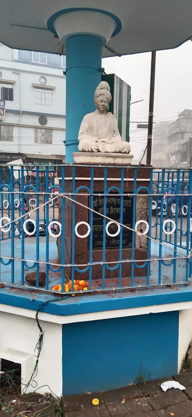 ইঁট দিয়ে স্বামী বিবেকানন্দের মূর্তি ভাঙার চেষ্টা : ভাঙলো নামফলকের একাংশ